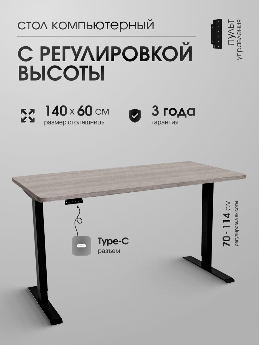 Стол письменный LuxAlto с электрорегулировкой высоты, столешница ЛДСП 140х60 см Бежево-серая, Черное подстолье SRF2J: сравнение цен, характеристики, фото, актуальное наличие и цены.