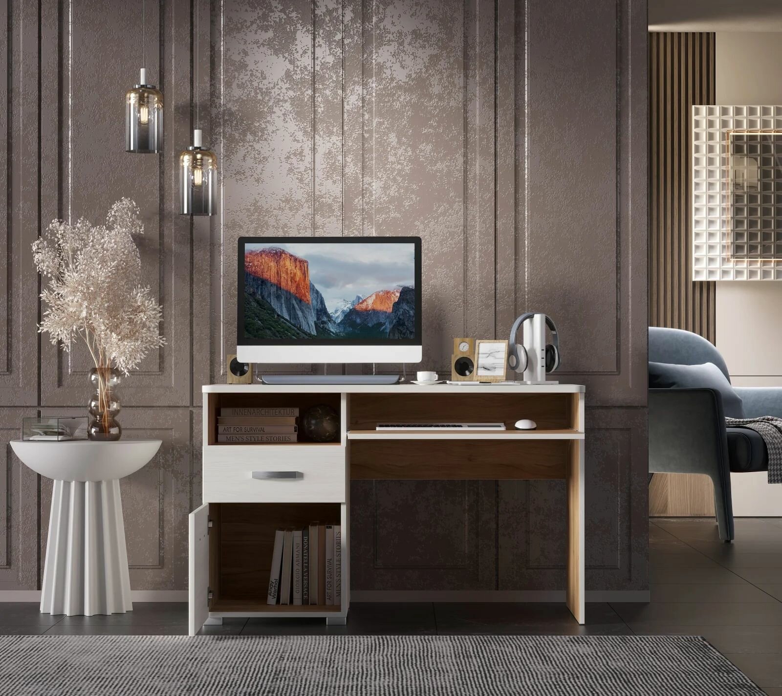 Купить Стол письменный Malta BIU1D1S, лиственница сибирская/орех, с ящиком, для школьника с доставкой по всей России.