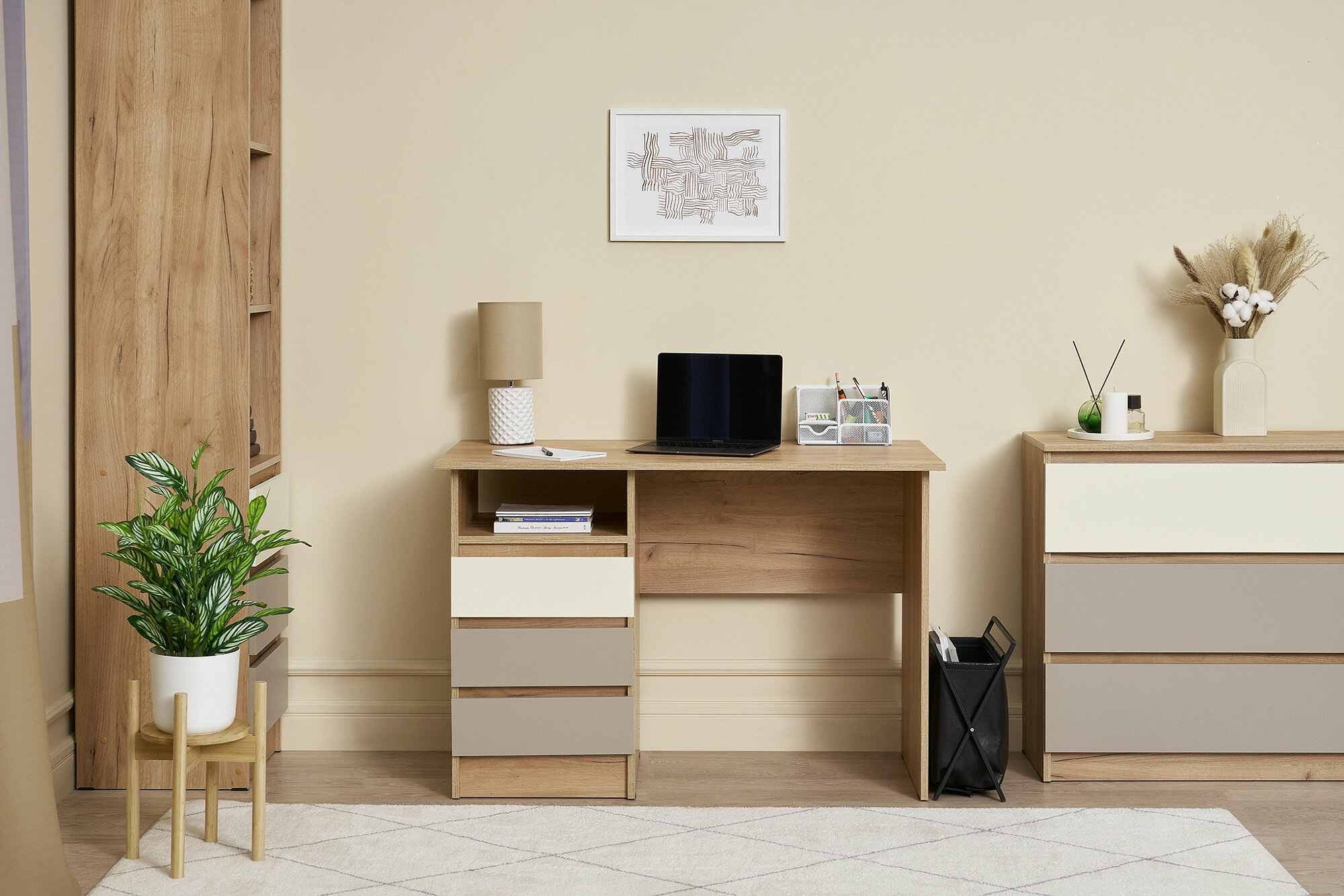 Купить Стол письменный Миф Челси Color (Слоновая кость/Глиняный серый/Дуб крафт) размер 1100х750х55мм с доставкой по всей России.