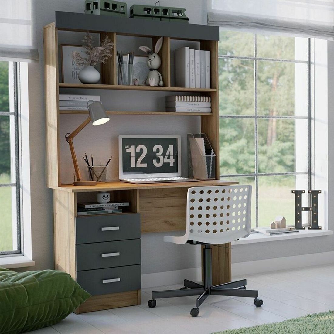 Купить Стол письменный Миф Мартина с надстройкой (графит, дуб крафт) размер 1100х1814х550мм с доставкой по всей России.