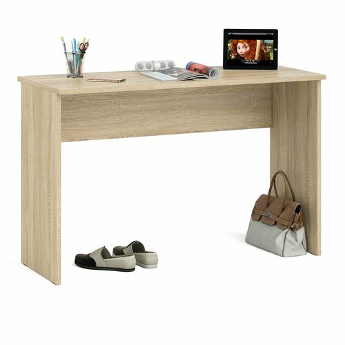 - Столещница размером 120х50 см. вместит все необходимые принадлежности для работы. По бокам располагаются две опоры из ЛДСП выполняющие роль ножек. С задней стороны стола имеется царга - верхняя соединительная планка между ножками.