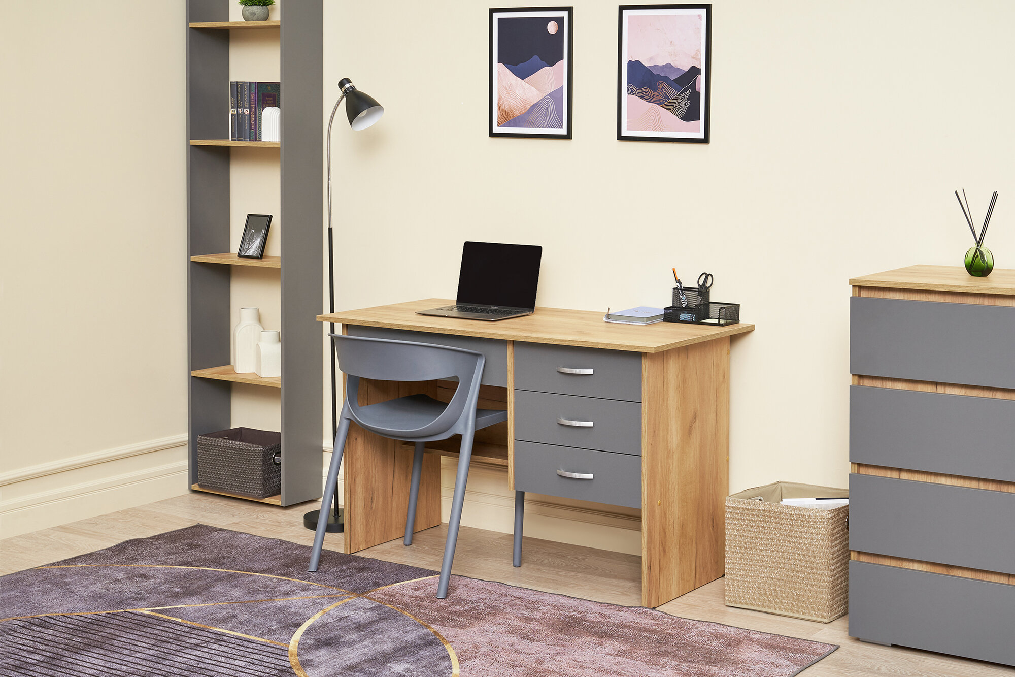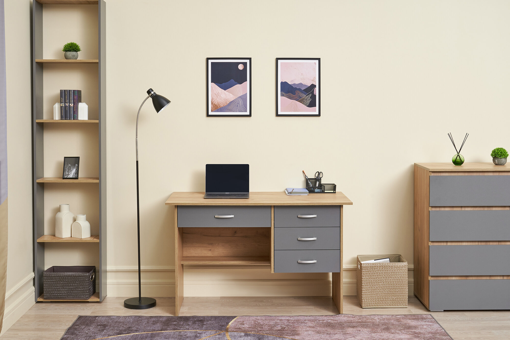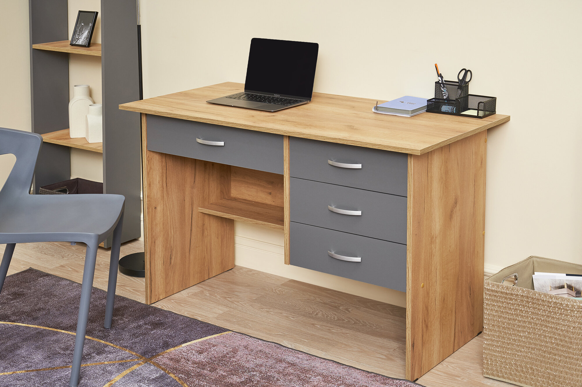 Купить Стол письменный Нонтон Сити, 120x59x75 см, 4 ящика, дуб крафт золото / графит серый с доставкой по всей России.