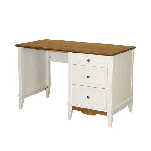 Стол письменный представлен в сочетании цветов «белый + антик». Комбинация цвета «белый + антик» подразумевает отделку столешницы и нижней декоративной планки столика в цвет «антик», остальная часть изделия в белом цвете. Цвет «антик» пропускает текстуру дерева. Под «белым» лаком структура древесины слегка просматривается, что безусловно украшает изделие и является показателем натуральности мебели.