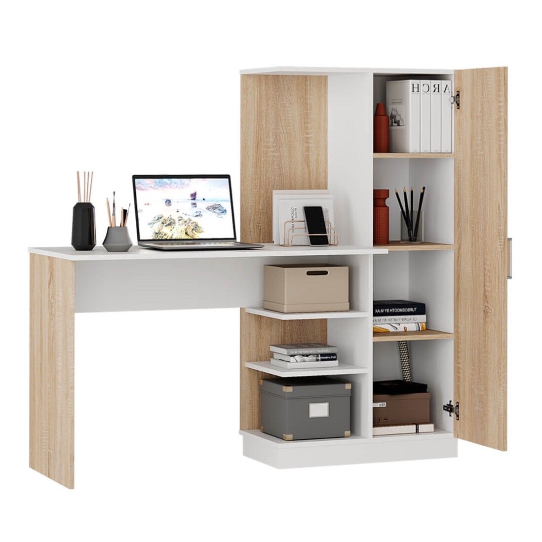 Стол письменный с пеналом Бейсик, универсальная сборка (Дуб Сонома/Белый), 1450*502*1350 мм: сравнение цен, характеристики, фото, актуальное наличие и цены.