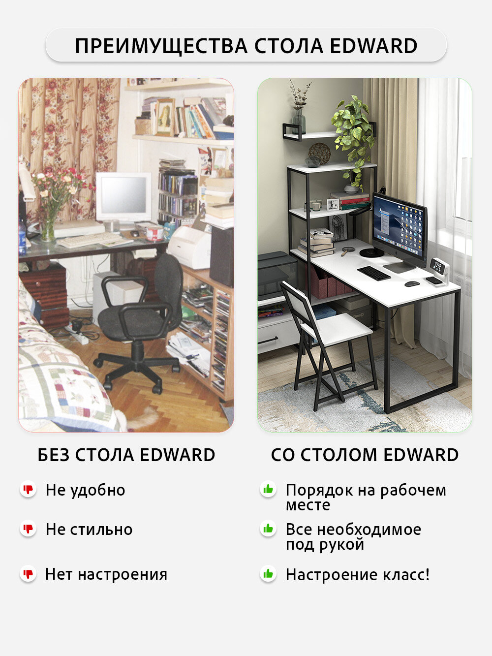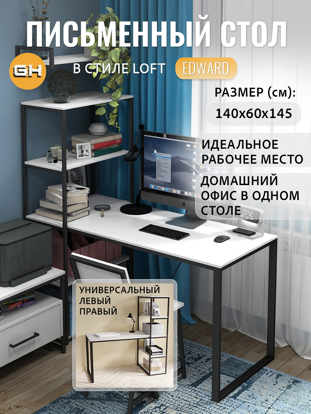 Стол письменный с полками EDWARD, белый, стол компьютерный, для школьника, офиса, рабочий, швейный гростат 140х60х75 см.: сравнение цен, характеристики, фото, актуальное наличие и цены.