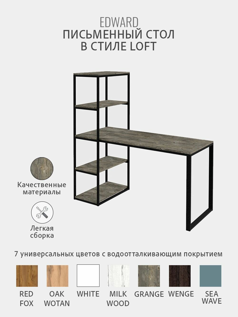Стол письменный с полками EDWARD, серый, компьютерный для школьника, офиса, рабочий гростат 140х60х75 см.: сравнение цен, характеристики, фото, актуальное наличие и цены.