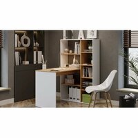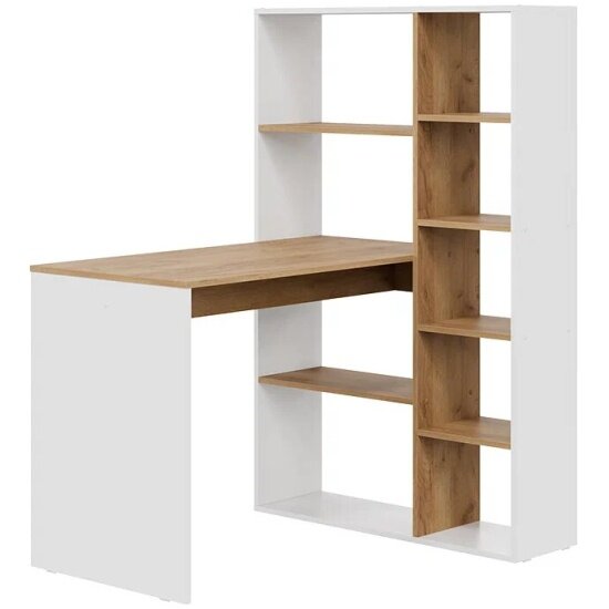 Стол письменный тип 16 станет отличным решением как для взрослого, так и для ребенка.Текстуры – «Дуб Крафт золотой», «Белый», прекрасно сочетаются между собой и дополняют простую и надежную конструкцию. Наличие акцентных деталей поможет сосредоточиться и безошибочно определить нужные оттенки для дополнительных декоративных элементов.Письменный стол тип 16 совместил в себе удобный письменный стол и стеллаж. Данный вариант прекрасно подойдет тем, кто хочет разделить зону комнаты на две части. В одной можно поставить все необходимые элементы для работы и учебы, а в другой – диван или другой предмет мебели. Стол с стеллажом позволит держать в непосредственной близости к рабочему месту все необходимые принадлежности: оргтехнику, бумагу для распечатки, файловые папки, книги.