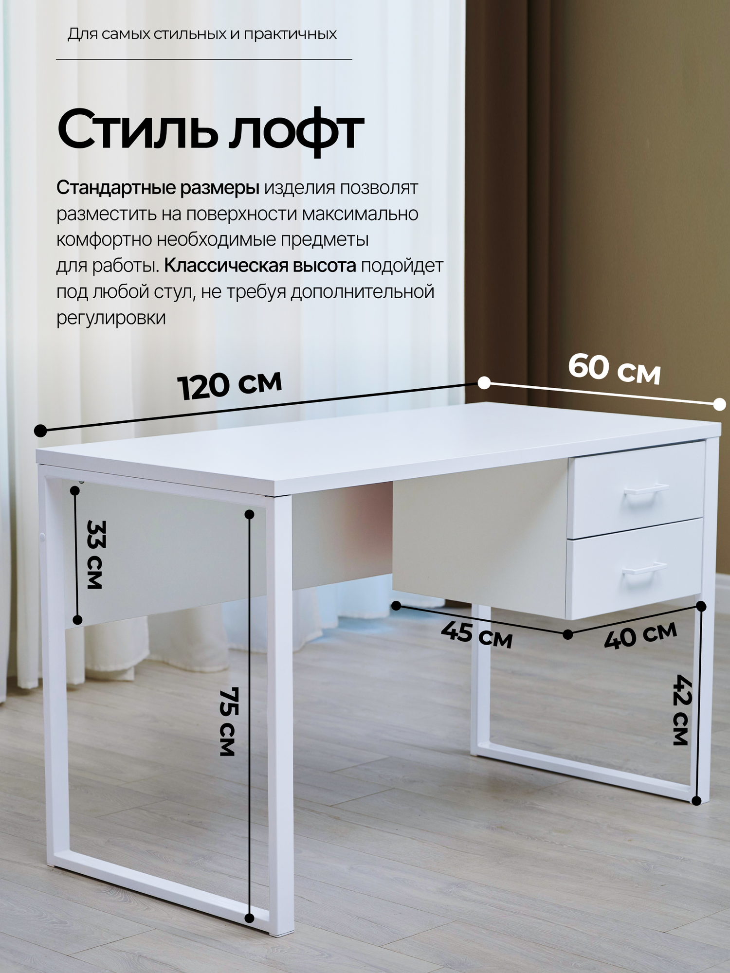 Размеры стола (ДхШхВ): 120х60х75 см.