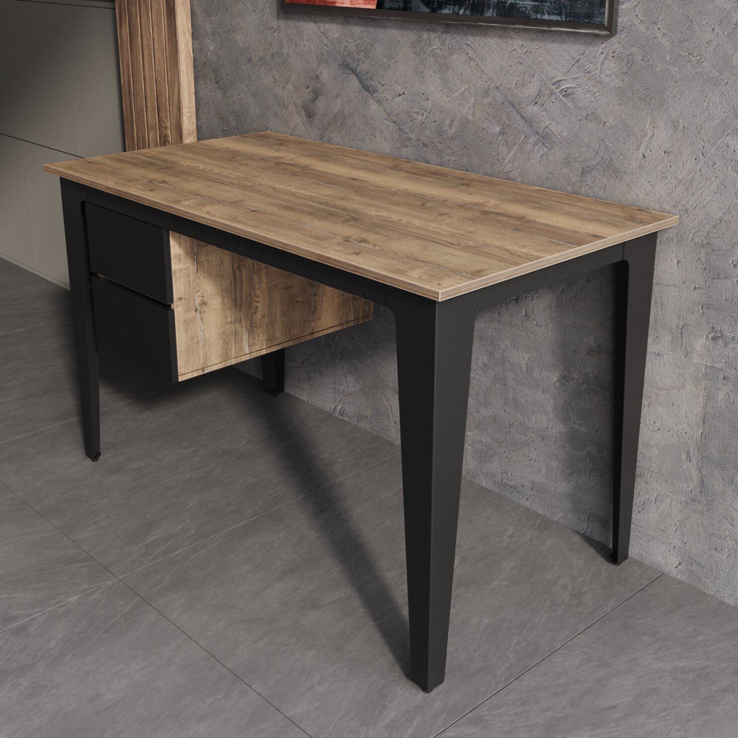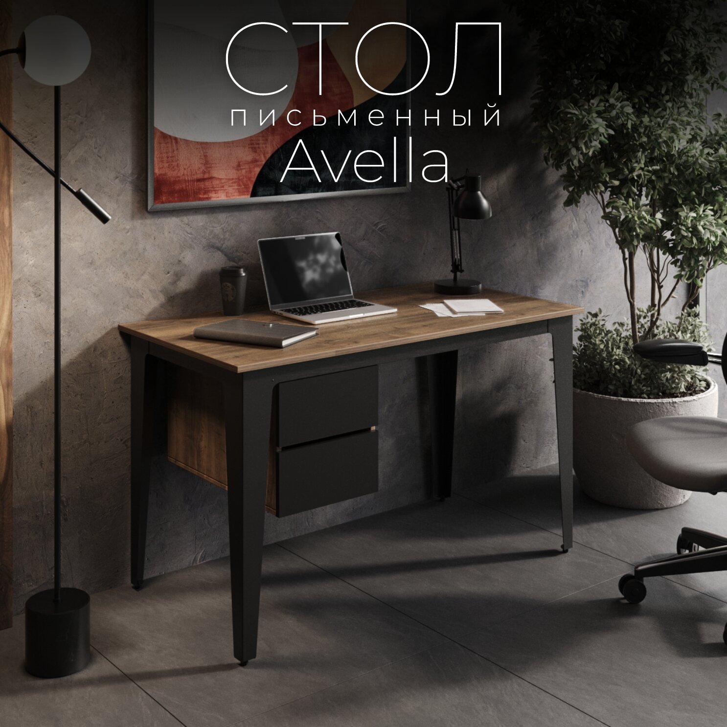 Купить Стол письменный с ящиками Avella Дуб Галифакс олово. Стол компьютерный, письменный стол для школьника, стол с тумбой. с доставкой по всей России.