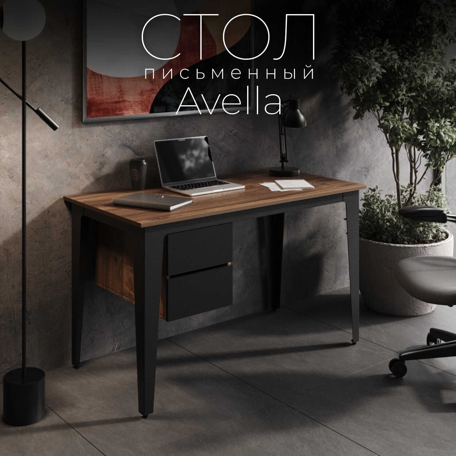 Купить Стол письменный с ящиками Avella Дуб Хантон Темный. Стол компьютерный, письменный стол для школьника, стол с тумбой. с доставкой по всей России.