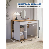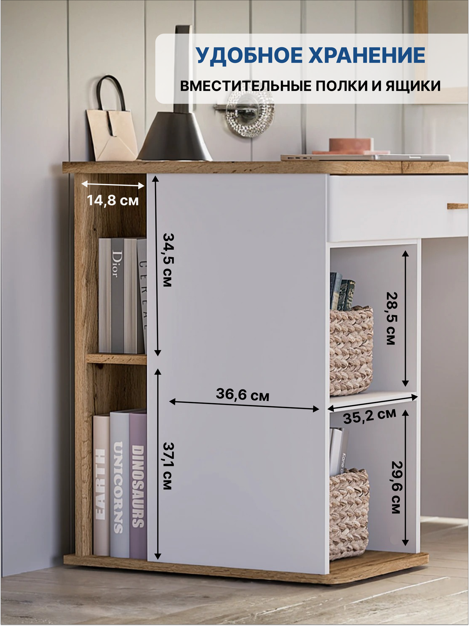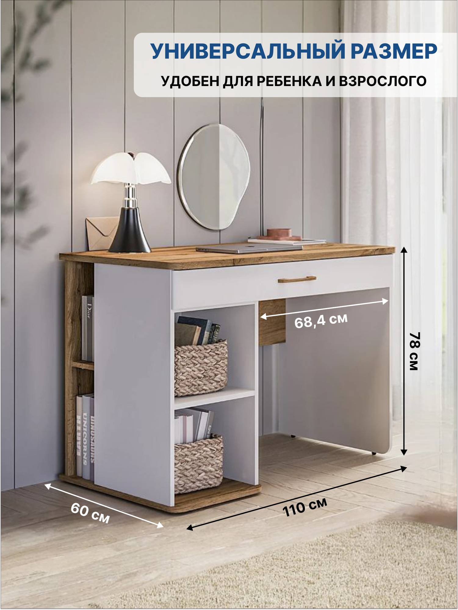 Купить Стол письменный для школьника Кассия Lazurit стол компьютерный игровой с ящиками и полками ЛДСП Белый/Дуб 110х60х78см с доставкой по всей России.