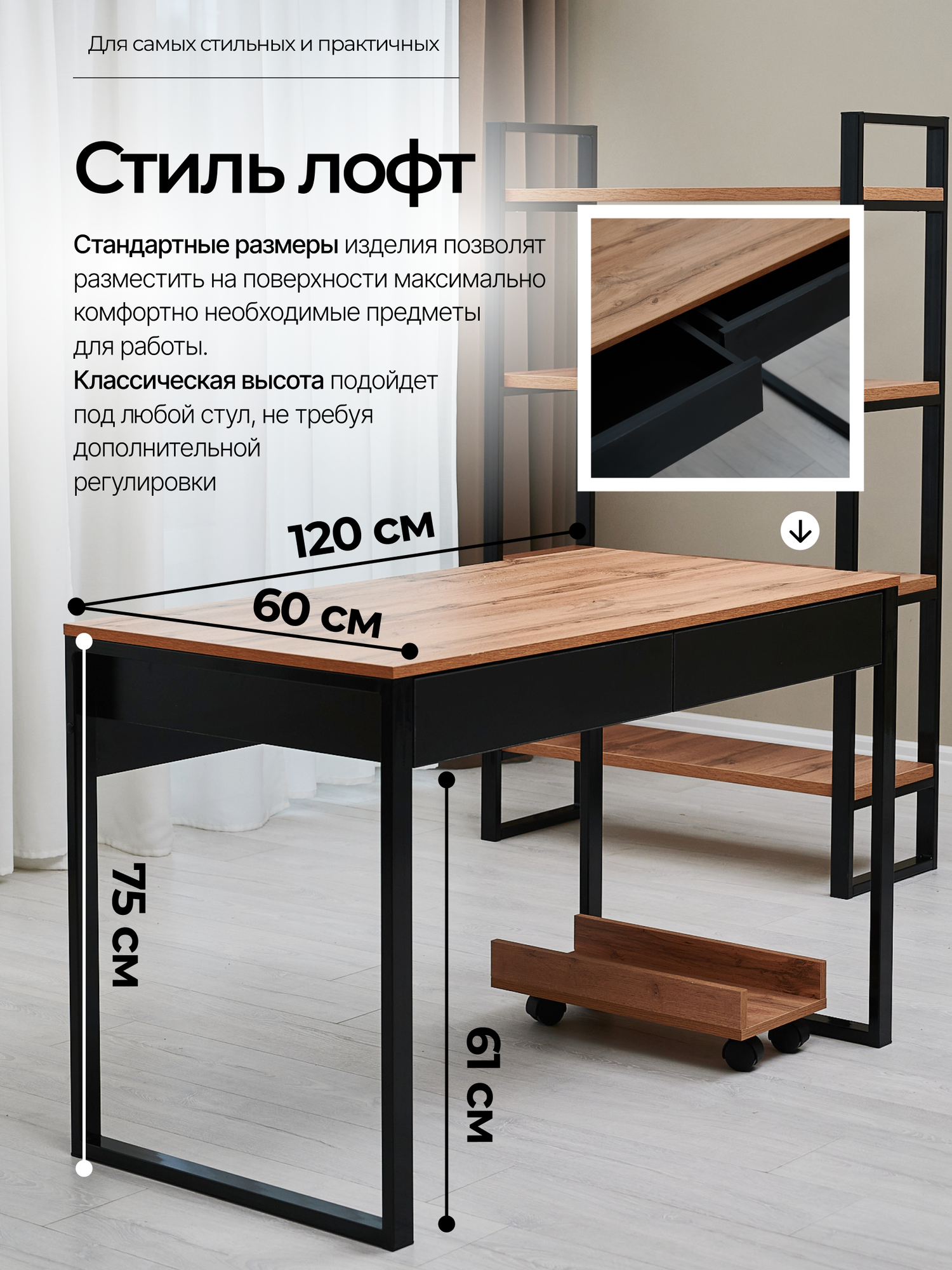Стол письменный с ящиками Лофт Меркурий 120х60 Дуб Вотан/черные ящики черный: сравнение цен, характеристики, фото, актуальное наличие и цены.