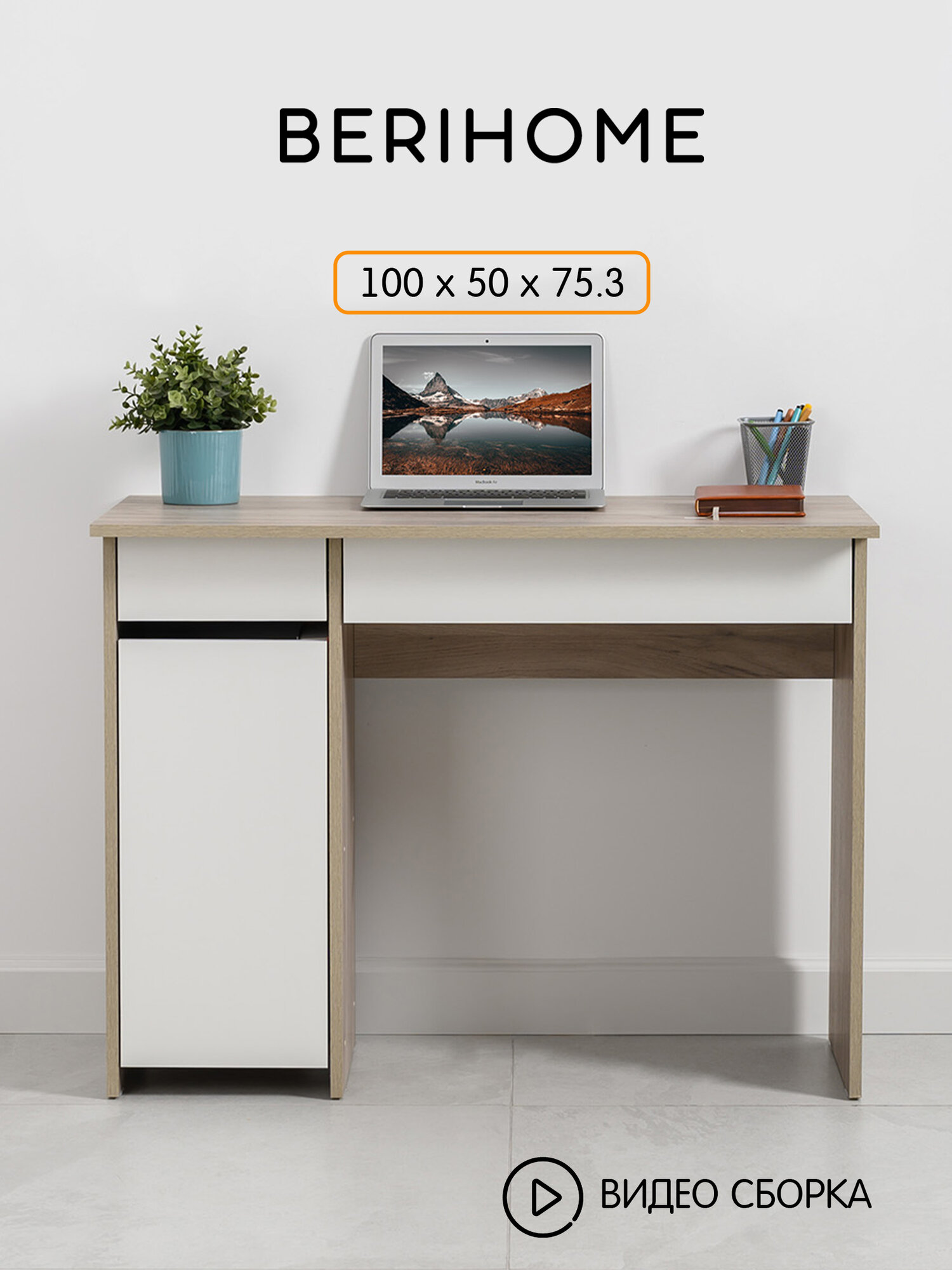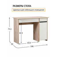 Стол имеет современный дизайн и белый цвет с шагренью, что позволяет ему легко вписаться в любой интерьер. Благодаря своим компактным размерам (высота 75,3 см, ширина 100 см, глубина 50 см) и весу 23,3 кг, он станет отличным выбором для небольшой комнаты.