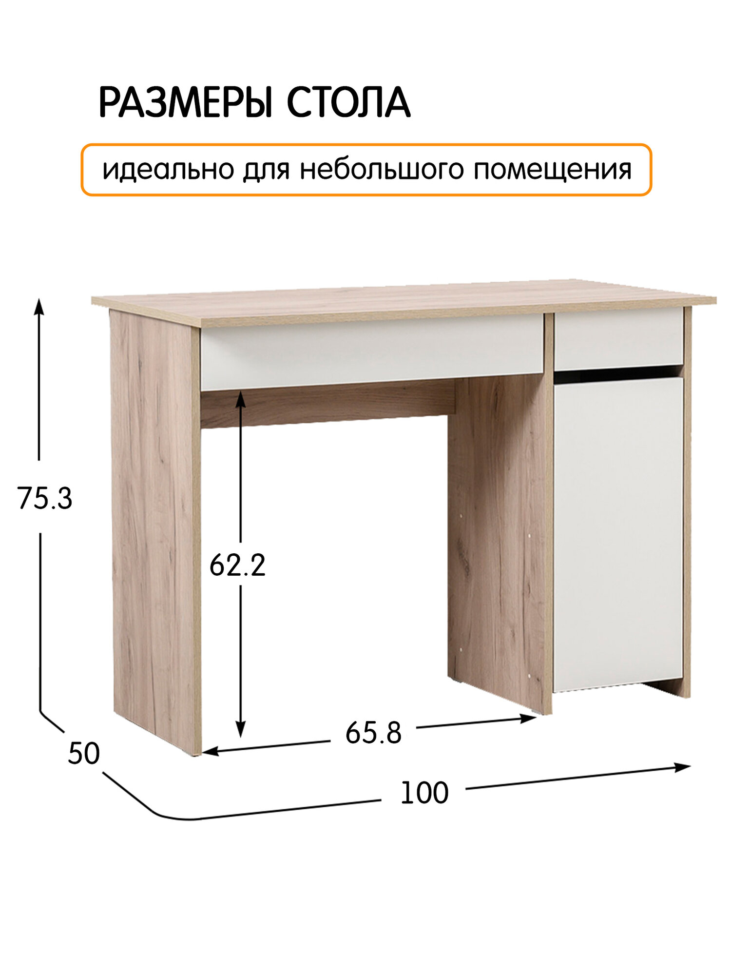 Стол письменный Санди 12.151.07 Дуб серый крафт, Белый РЕ шагрень - это компактный и функциональный компьютерный стол, который станет незаменимым помощником для работы и учебы. Он выполнен из качественного ЛДСП, обеспечивая прочность и долговечность.