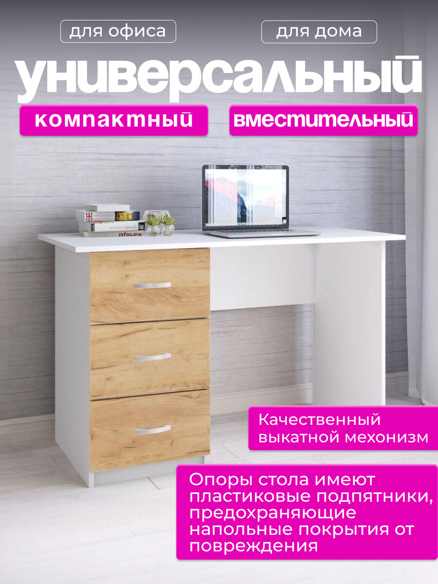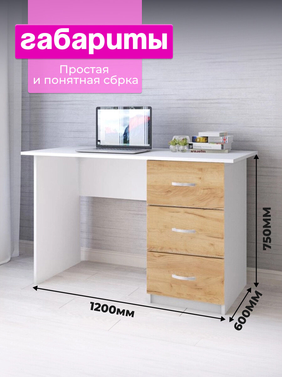 Купить Стол, Дуб Крафт золотой/Белый с тиснением, 750x1200x600 мм, с выдвижными ящиками на роликовых направляющих с доставкой по всей России. Стол, Дуб Крафт золотой/Белый с тиснением, 750x1200x600 мм, с выдвижными ящиками на роликовых направляющих: сравнение цен, характеристики, фото, актуальное наличие и цены.