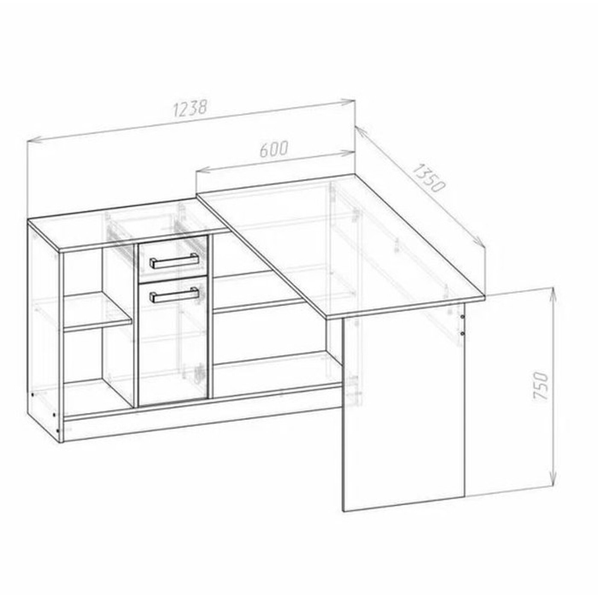 Размеры стола составляют 1350х1238х750 мм, что обеспечивает достаточное пространство для размещения всех ваших рабочих принадлежностей.