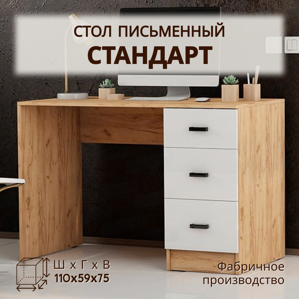 Благодаря продуманной конструкции, стол письменный предлагает оптимальный баланс между рабочим пространством и компактностью. Столешница размером 110х59 см предоставляет простор для ноутбука, документов, книг и других необходимых для работы предметов. Высота стола - 75 см, что обеспечивает комфортное положение для работы или учебы, способствуя поддержанию правильной осанки и повышая продуктивность.