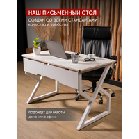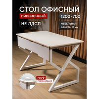 Купить Стол письменный стройартмебель, офисный, лофт, 120×70х76 см, без ящиков, фанера/металл, белый с доставкой по всей России.