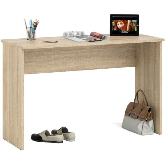 - Столещница размером 120х50 см. вместит все необходимые принадлежности для работы. По бокам располагаются две опоры из ЛДСП выполняющие роль ножек. С задней стороны стола имеется царга - верхняя соединительная планка между ножками.