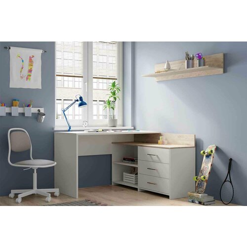Рабочий стол с полками и ящиком организует место для хранения книг, документов и других предметов, необходимых для работы. Инновационный ящик-фолдинг на шариковых направляющих обеспечит бесшумное и плавное открытие. Также в столе есть открытые полки для ноутбука и оргтехники, что удобно для тех, кто периодически пользуется компьютером и должен иметь все самое необходимое под рукой. Модульный письменный стол для домашнего офиса можно укомплектовать дополнительными предметами мебели, которые помогут вам максимально использовать свое рабочее пространство.