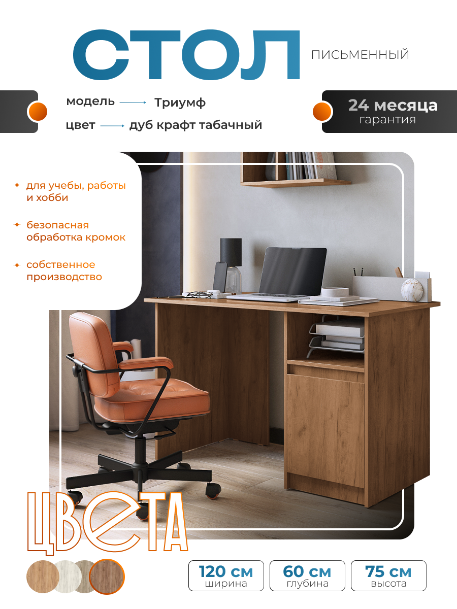 Купить Стол письменный «Триумф» дуб крафт табачный с тумбой, 1200х600х750 мм. с доставкой по всей России. Стол письменный «Триумф» дуб крафт табачный с тумбой, 1200х600х750 мм.: сравнение цен, характеристики, фото, актуальное наличие и цены.