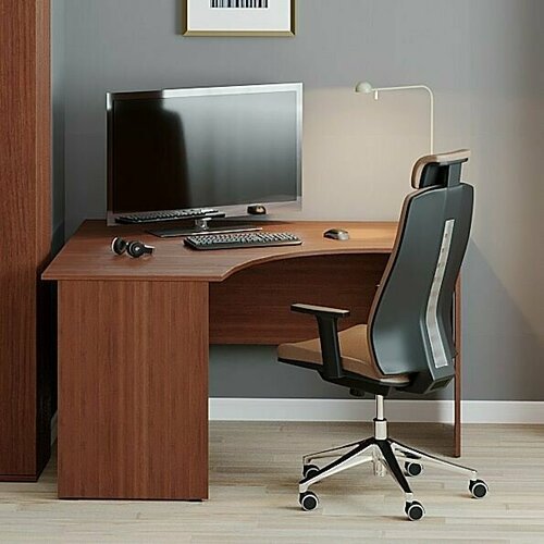Эргономичный левосторонний стол на опорах из ЛДСП состоит из столешницы, боковых опор и передней панели. Столешница изготовлена из высококачественного ЛДСП 25 мм, боковые опоры изготовлены из ЛДСП 18мм. Столешница имеет отверстие для подвода коммуникаций, которая закрыта пластиковой заглушкой. Угловой компьютерный стол — классическое интерьерное решение, которое одинаково хорошо подойдет для квартиры и офиса. Лаконичный дизайн, надежность и простая сборка гарантируют обустройство эргономичного рабочего места в любом помещении с учетом эстетических предпочтений и функциональных потребностей покупателя. Офисный стол выполнен из ламинированного ДСП в цвете миланский орех светлый, оснащен просторной столешнице. За счет задействования углового пространства и компактных размеров его можно использовать для работы за компьютером или ноутбуком в небольшом кабинете или гостиной, в качестве письменного стола школьника в детской или как игровой стол для двух и более мониторов.