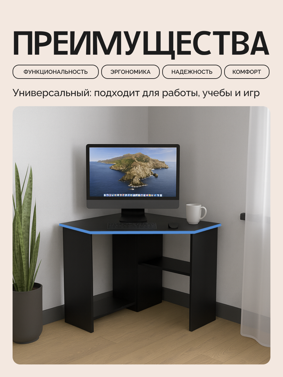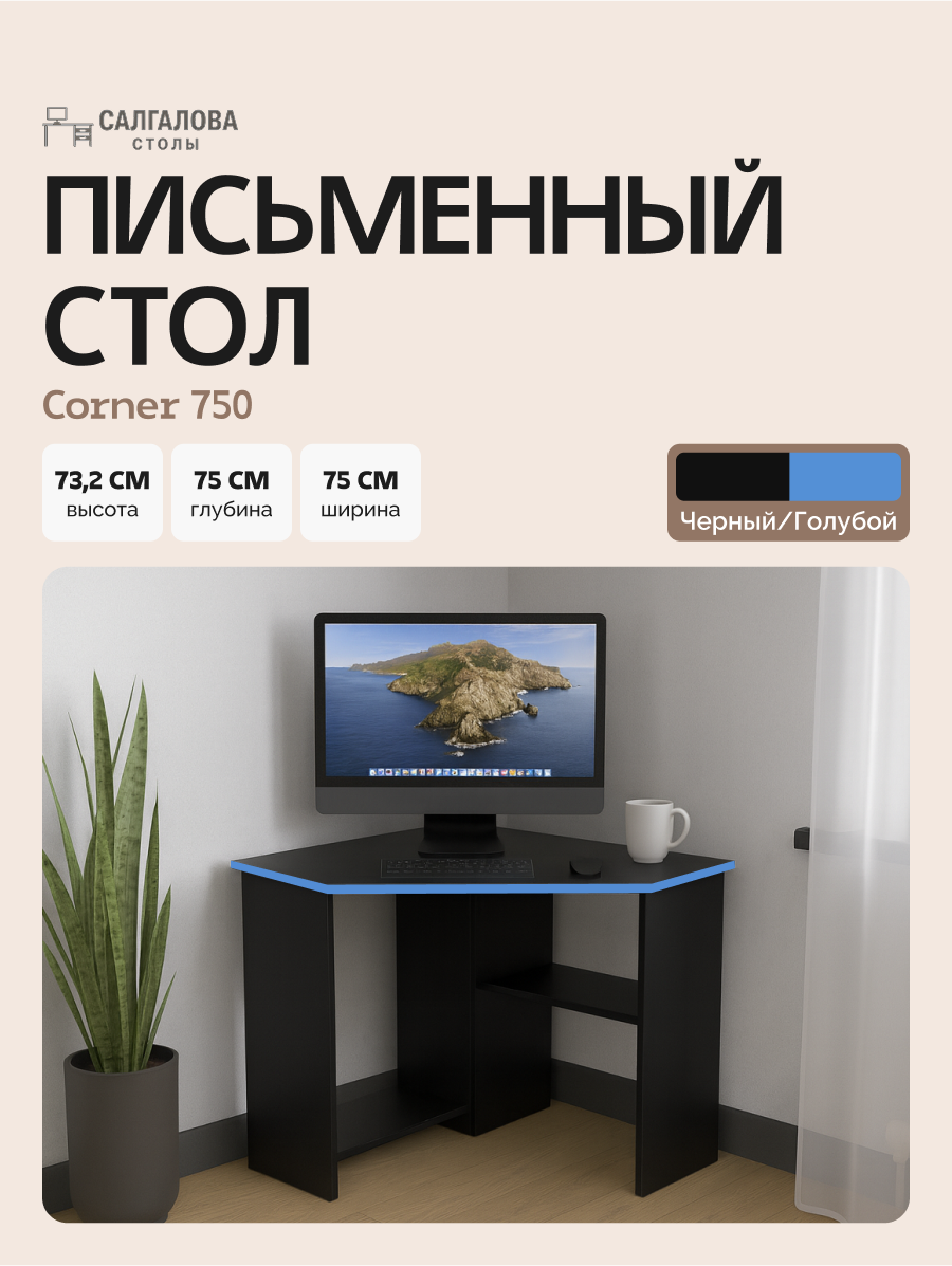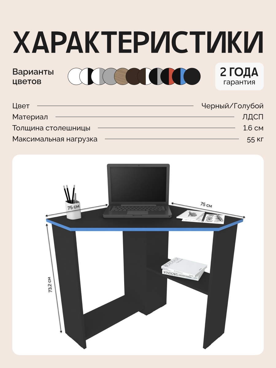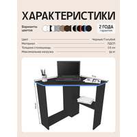Стол письменный для школьника, компьютерный, угловой с полками Corner 750 Черный/Голубой, 75*75 см: сравнение цен, характеристики, фото, актуальное наличие и цены.