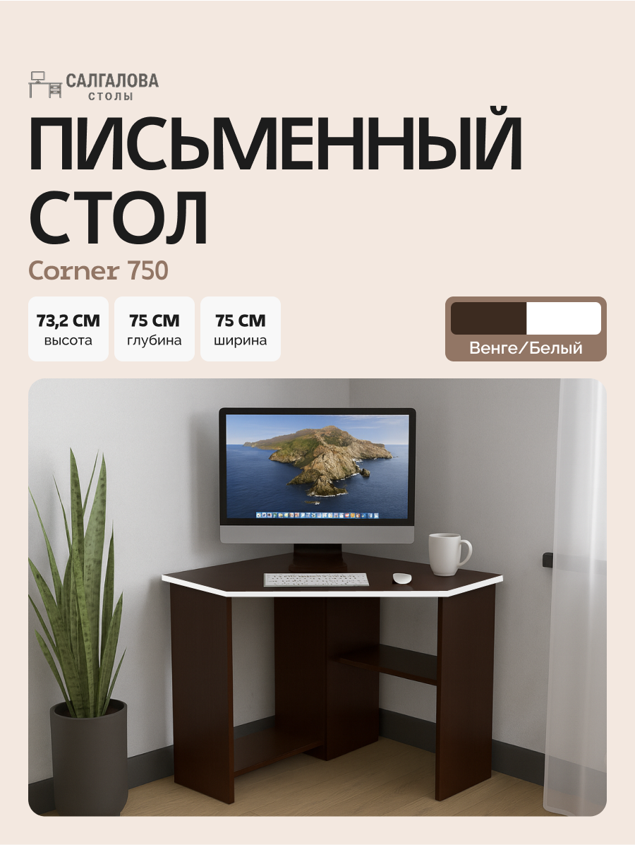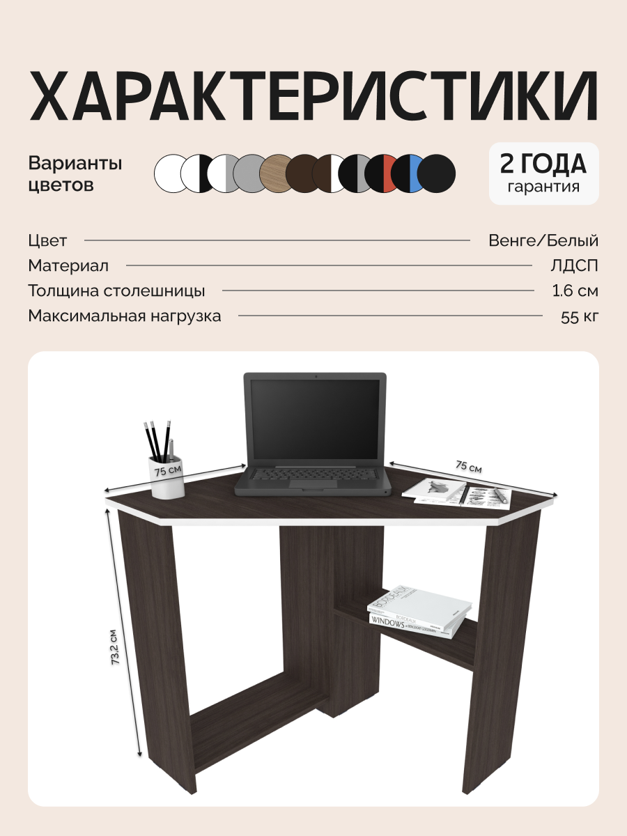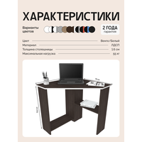 Стол письменный для школьника, компьютерный, угловой с полками Corner 750 Венге/Белый, 75*75 см: сравнение цен, характеристики, фото, актуальное наличие и цены.