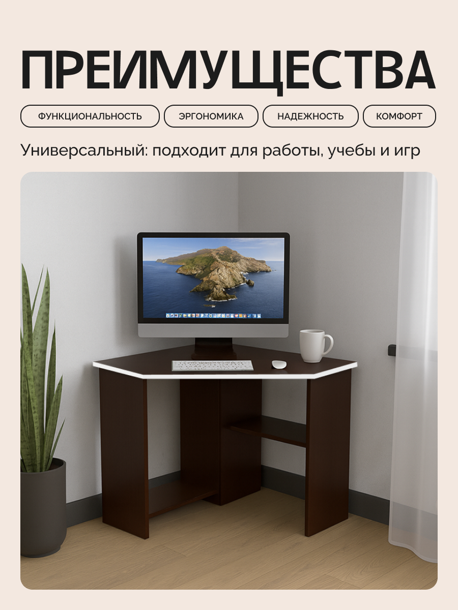 | Особенности | угловой, отделение для системного блока |