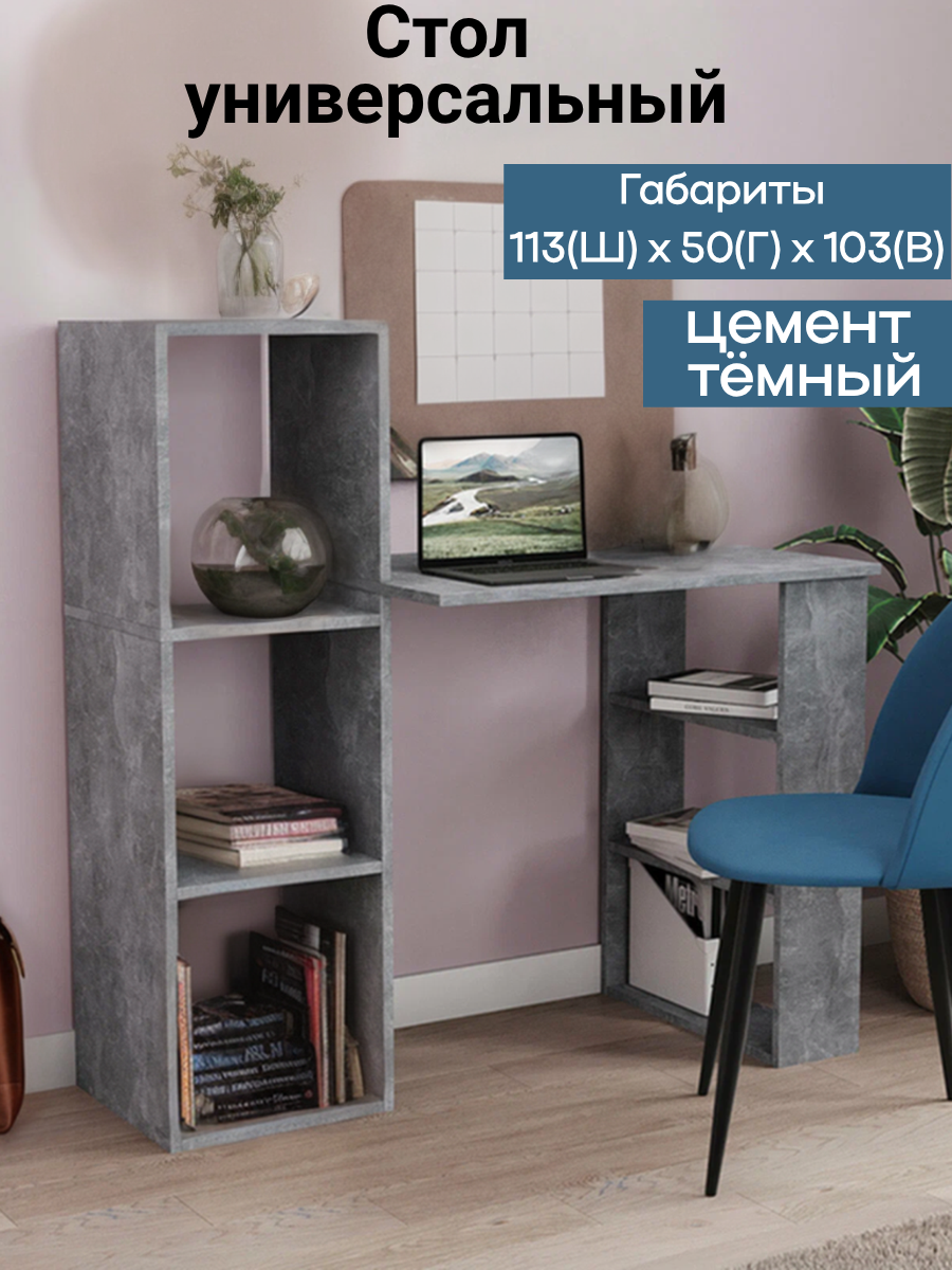 Стол компьютерный письменный универсальный, ширина 113 см, цвет Цемент тёмный, 113(ш)х50(г)х103(в) см, ЛДСП: сравнение цен, характеристики, фото, актуальное наличие и цены.