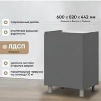 Стол под мойку шириной 600 мм с распашным фасадом из модульной серии Денвер. Матовый фасад и отсутствие внешней фурнитуры привлечет внимание гостей и украсит кухню. Конструкция пенала предусматривает максимальную нагрузку на стационарные полки до 10 кг, а на съемные полки до 5 кг.