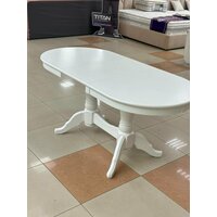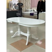 Вставка хранится внутри. Овальная форма столешницы толщиной 22 мм делает стол травмобезопасным.