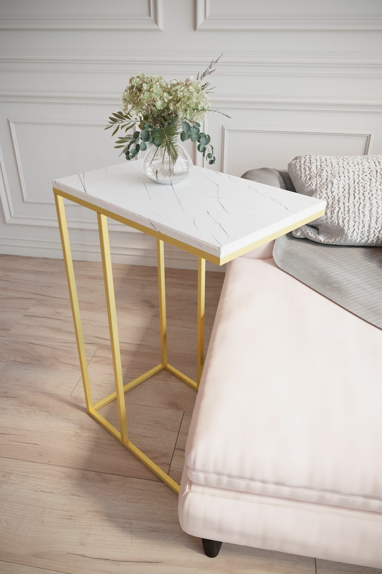 Купить Стол придиванный Калифорния Агами Голд Белый мрамор Размеры: Высота 705мм Глубина 310мм Ширина 500мм с доставкой по всей России.