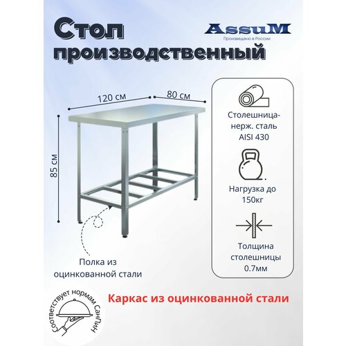 Стол производственный Assum, 1200х800х850мм, без борта, открытый, 1 полка решетчатая оцинк, разборный, каркас уголок оцинк, ст. нерж.430: сравнение цен, характеристики, фото, актуальное наличие и цены.