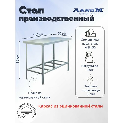 Стол производственный Assum, 1800х600х850мм, без борта, открытый, 1 полка решетчатая оцинк, разборный, каркас уголок оцинк, ст. нерж.430: сравнение цен, характеристики, фото, актуальное наличие и цены.