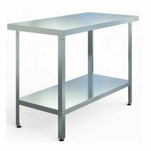 Стол производственный сборно-разборный открытый центральный, серии Standart, без борта, со столешницей из пищевой шлифованной нержавеющей стали AISI430 толщиной 0,7мм оснащён подложкой из ламинированного ДСП толщиной 16мм, рамкой столешницы из оцинкованной стали толщиной 1,5мм, нижней полкой из оцинкованной стали толщиной 0,7мм, разборным каркасом из уголка 40х40мм толщиной 1,5мм из оцинкованной стали, регулируемыми по высоте пластиковыми опорами ножек, Максимальная равномерно распределенная нагрузка на столешницу - до 150кг, Этот стол обладает всеми качествами, необходимыми для использования в производственных целях и на кухне. Изготовлен из прочной и долговечной нержавеющей стали, он обеспечит надежную поддержку для вашей работы. Металлическая конструкция этого стола, усиленная ДСП, придает ему дополнительную прочность и устойчивость. Сочетание нержавеющей стали и металла создает идеальное оборудование для производственных нужд.