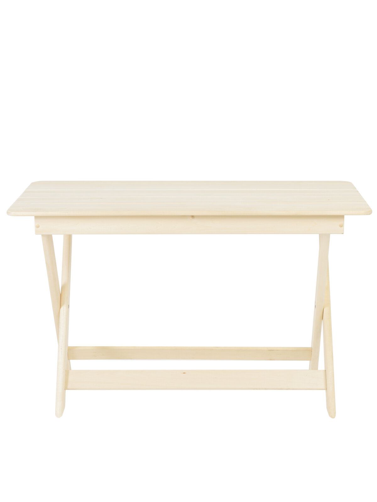 Стол раскладной 120*60см KETT-UP ECO VILLAGE деревянный – это крепкий, надежный и компактный стол с усиленной конструкцией и со столешницей массива дерева. Высота стола 73см – это стандартный размер обеденного стола. Поэтому складной деревянный стол KETT-UP VILLAGE можно использовать для семейных обедов, а также как дополнительный стол-помощник. Такой стол незаменим на даче, в доме, квартире и бане. Стол произведен из массива дерева – липы. Эта древесина популярна у столяров и производителей мебели. Основные преимущества - это вес и плотность материала. Липа достаточно устойчива к температурным перепадам и практически не трескается. Благодаря структуре древесины липа легко обрабатывается, шлифуется. Также ее можно покрыть лаком, морилкой или маслом, придав мебели особую прелесть и защитив ее от уличных осадков.