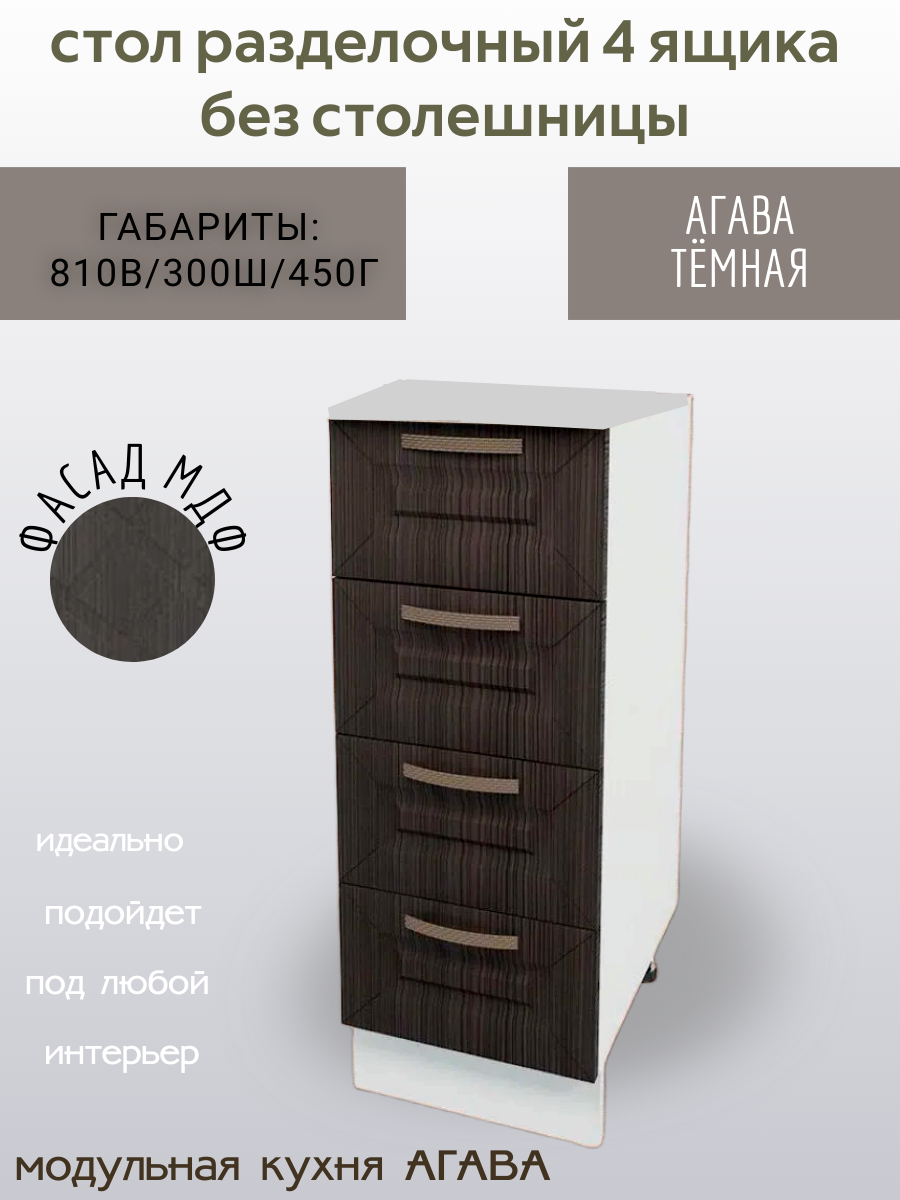 Купить Стол разделочный 4 ящика 30 см, МДФ/ЛДСП, цвет агава темная, 30х45х81 см, Н300-4Я с доставкой по всей России. Стол разделочный 4 ящика 30 см, МДФ/ЛДСП, цвет агава темная, 30х45х81 см, Н300-4Я: сравнение цен, характеристики, фото, актуальное наличие и цены.