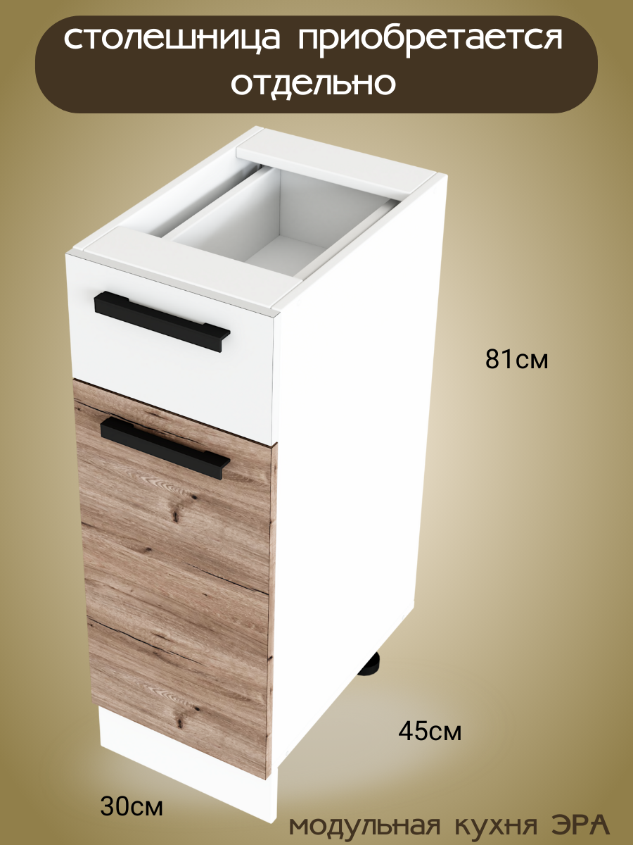 Стол разделочный с ящиком, шириной 30 см Эра, дуб горный/белый, 30х45х81 см: сравнение цен, характеристики, фото, актуальное наличие и цены.