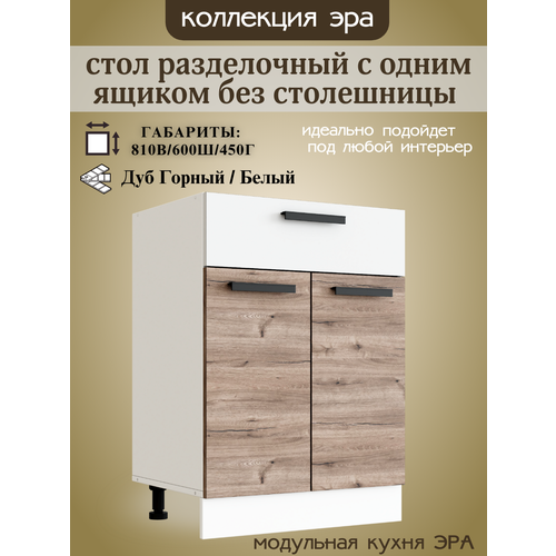 Стол разделочный с ящиком, шириной 60 см Эра, дуб горный/белый, 60х45х81 см: сравнение цен, характеристики, фото, актуальное наличие и цены.