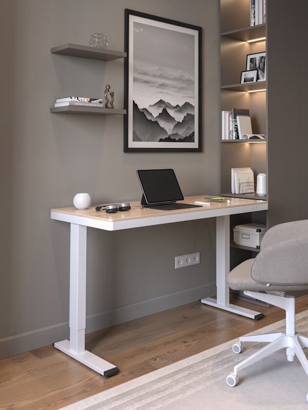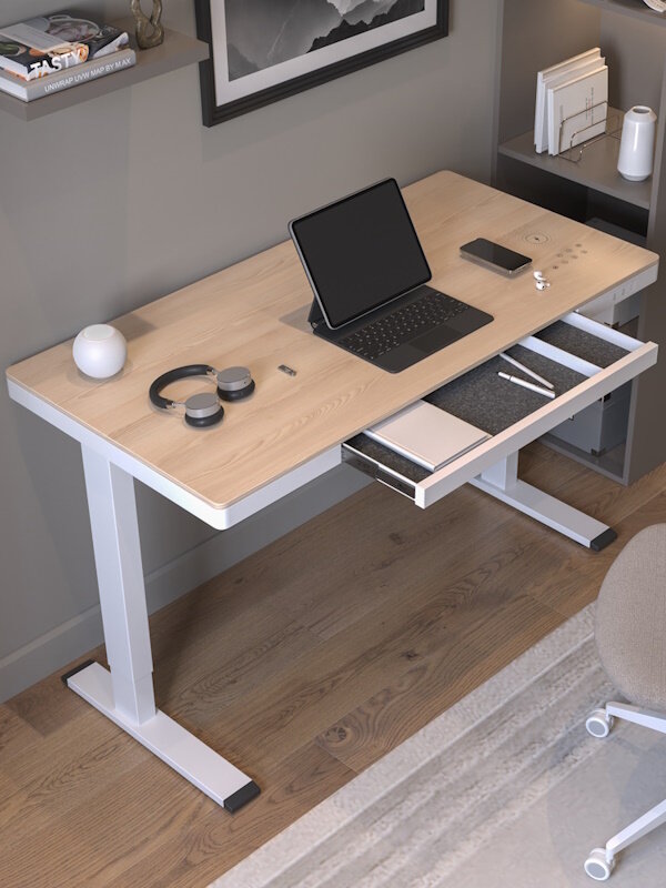 Основные характеристики: ✔ Размер: 120×60 см — универсальный размер для работы, учебы, творчества. ✔ Материал: МДФ с меламиновым покрытием, металлическое основание. ✔ Регулировка высоты: плавная, с двумя моторами. ✔ Зарядка: встроенная беспроводная зарядка, USB и Type-C порты. ✔ Комплектация: выдвижной ящик для хранения.