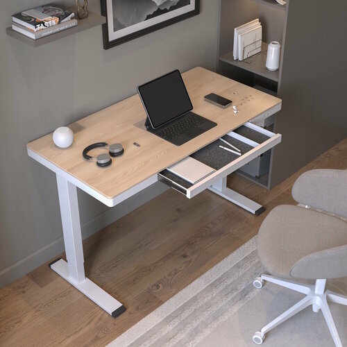 Регулируемый стол со столешницей из МДФ, покрытое меламиновой пленкой и умными функциями — идеальное сочетание стиля, технологий и комфорта!