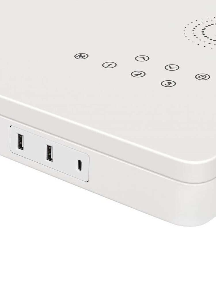 Основные характеристики: ✔ Размер: 120×60 см — универсальный размер для работы, учебы, творчества. ✔ Материал: МДФ с меламиновым покрытием, металлическое основание. ✔ Регулировка высоты: плавная, с двумя моторами. ✔ Зарядка: встроенная беспроводная зарядка, USB и Type-C порты. ✔ Комплектация: выдвижной ящик для хранения.