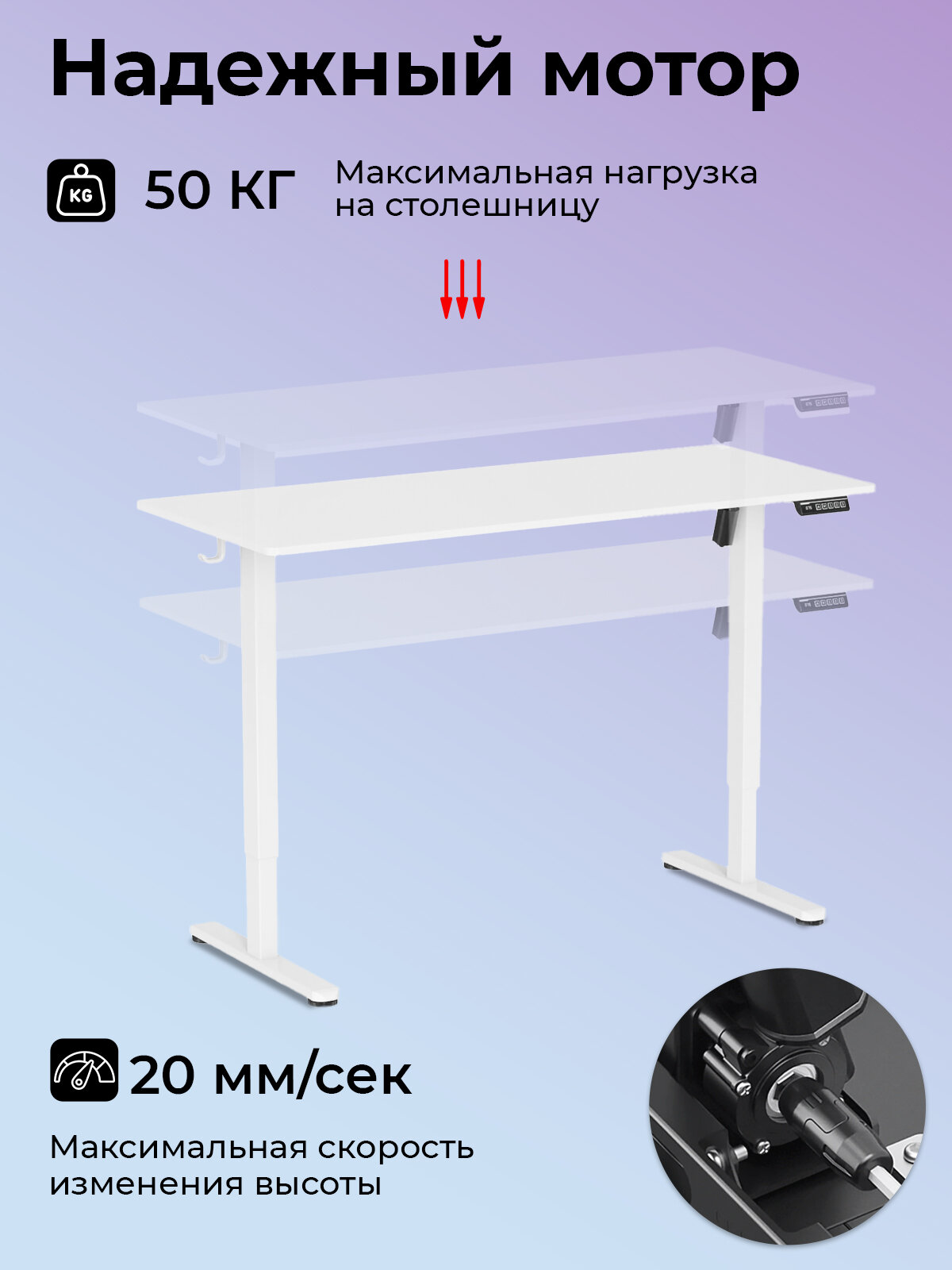 - Электропривод с мощным мотором: Плавная регулировка высоты стола от 720 до 1180 мм с максимальной скоростью 20 мм/сек. Работайте стоя или сидя – выбирайте удобное положение всего одним нажатием кнопки!