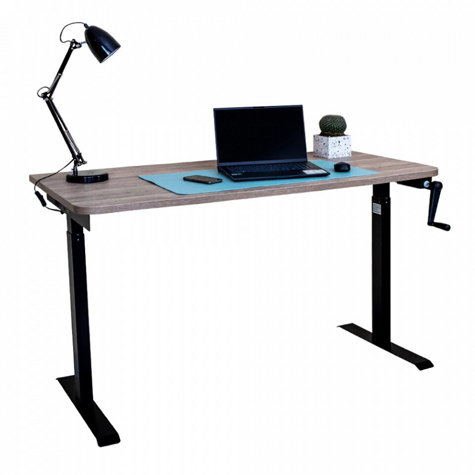 Купить Стол с регулировкой высоты механический LuxAlto LA-T33-M1 черный/дуб бежево-серый ЛДСП 140*60*2.5 с доставкой по всей России.