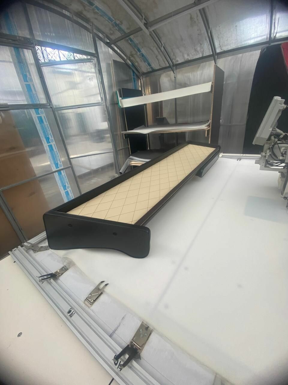 Столик в кабину грузовика с ящиком и вторым ярусом Чёрная экокожа Красный ромб Красная труба