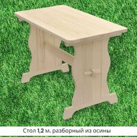 Стол садовый разборный из осины имеет светло-коричневый цвет, который гармонично впишется в любой садовый интерьер. Размеры стола составляют 120 см в ширину и 69 см в высоту, что делает его удобным для использования на различных площадках.