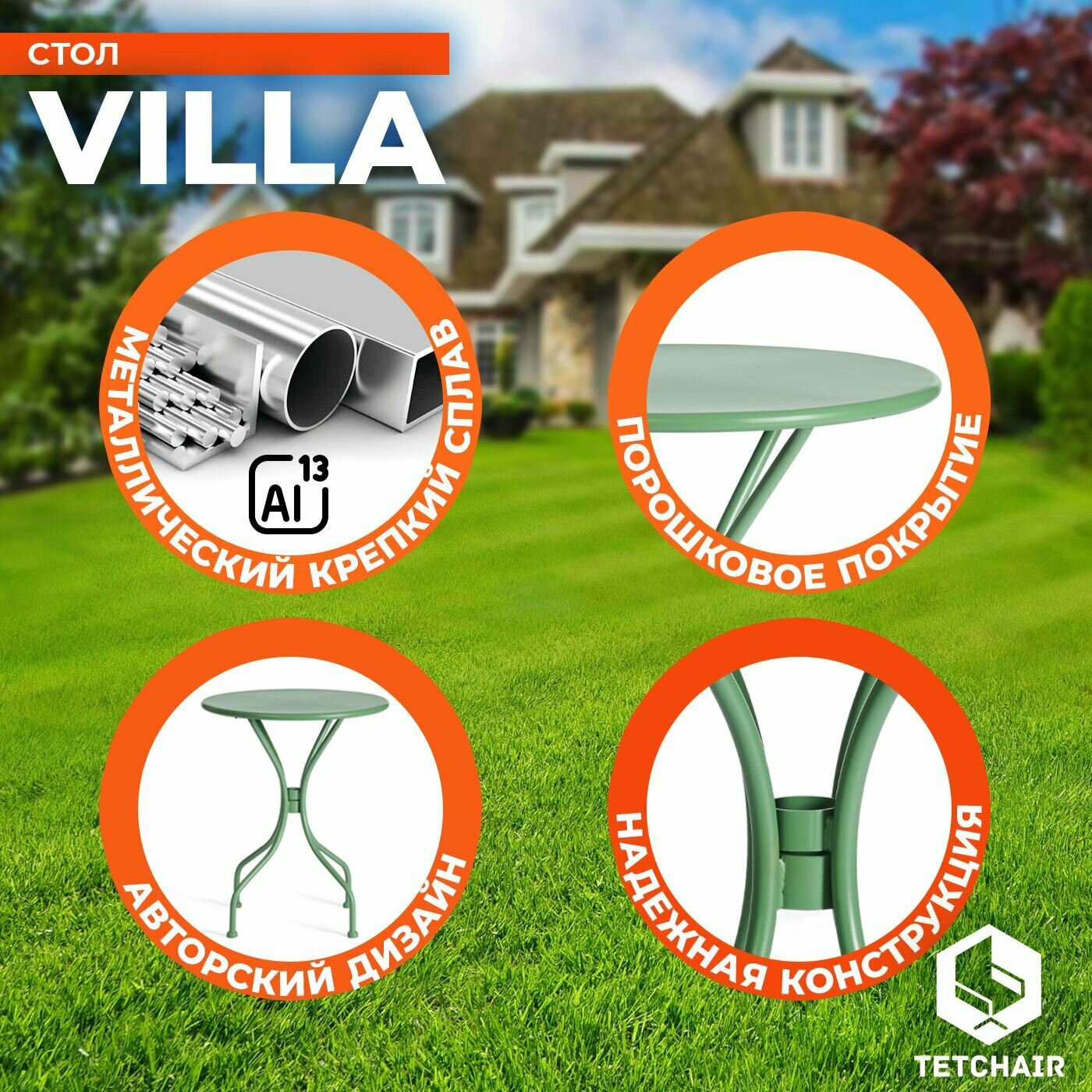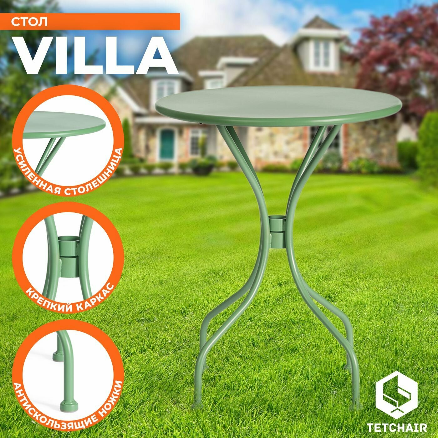 Стол VILLA из коллекции CHARMANTE идеально подойдет для использования в доме, саду, на балконе или террасе, создаст уютную атмосферу и стильный интерьер в любом пространстве. Круглая столешница, изящные устойчивые ножки оригинальной формы, привлекательный дизайн подчеркивают уникальность и особенную красоту изделия. Элегантная модель выполнена из стального сплава, что обеспечивает ей высокую прочность и долговечность. Круглый стол VILLA выглядит стильно и красиво. Модель практична в использовании, обладает долгим сроком службы, не требует специального ухода, способна подчеркнуть индивидуальность владельца и его безупречный вкус. Сочетание прочности материала, уникального внешнего вида и оригинального дизайна делает этот стол незаменимым предметом мебели для отдыха и приема гостей как на улице, так и внутри помещения.