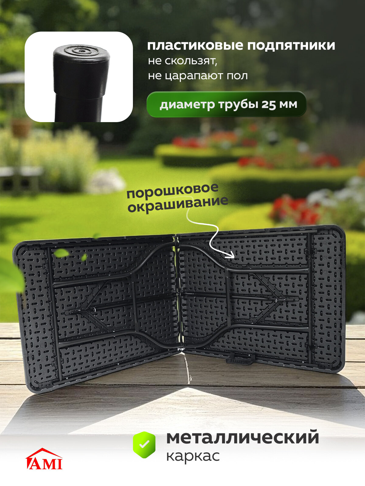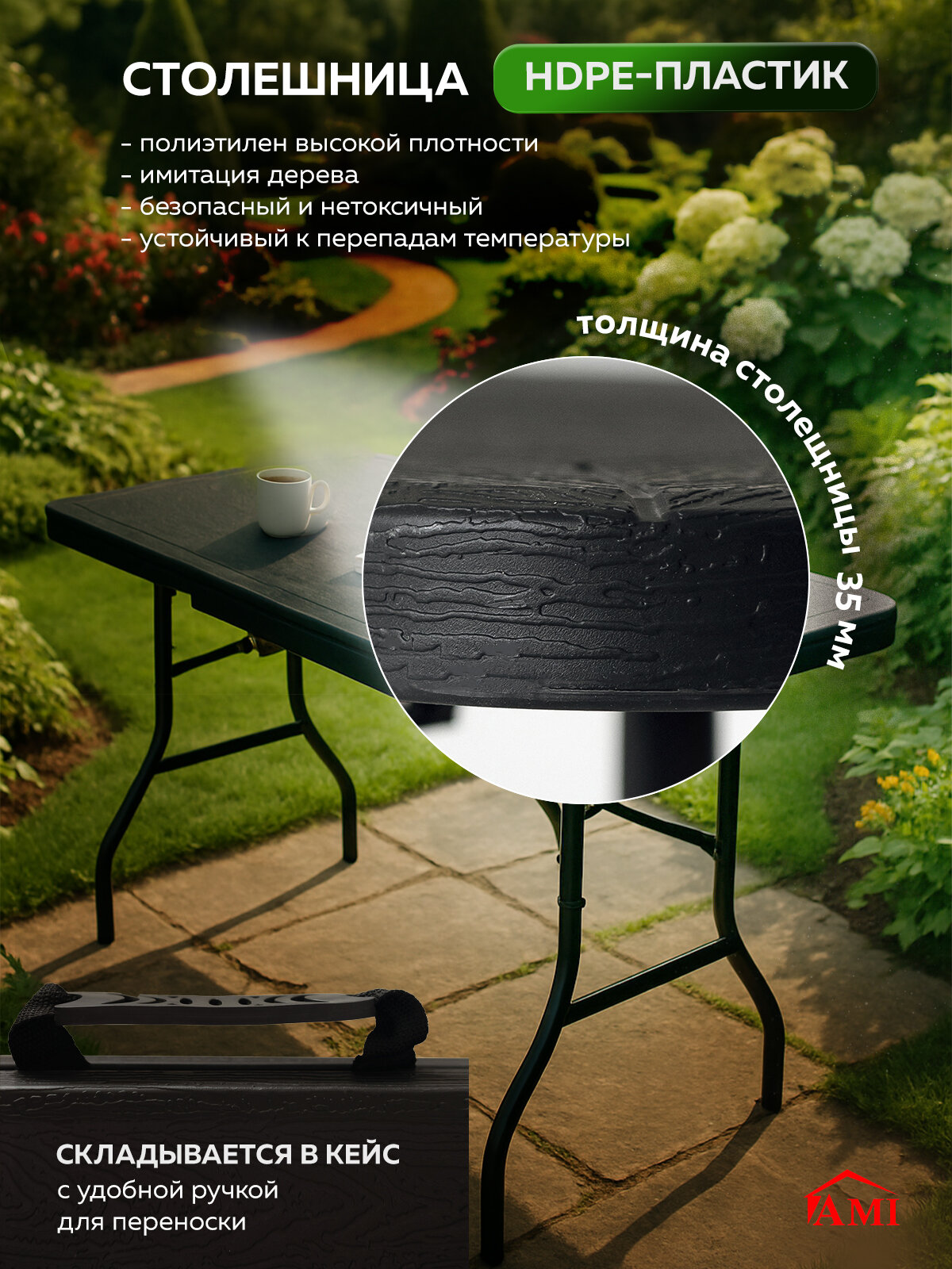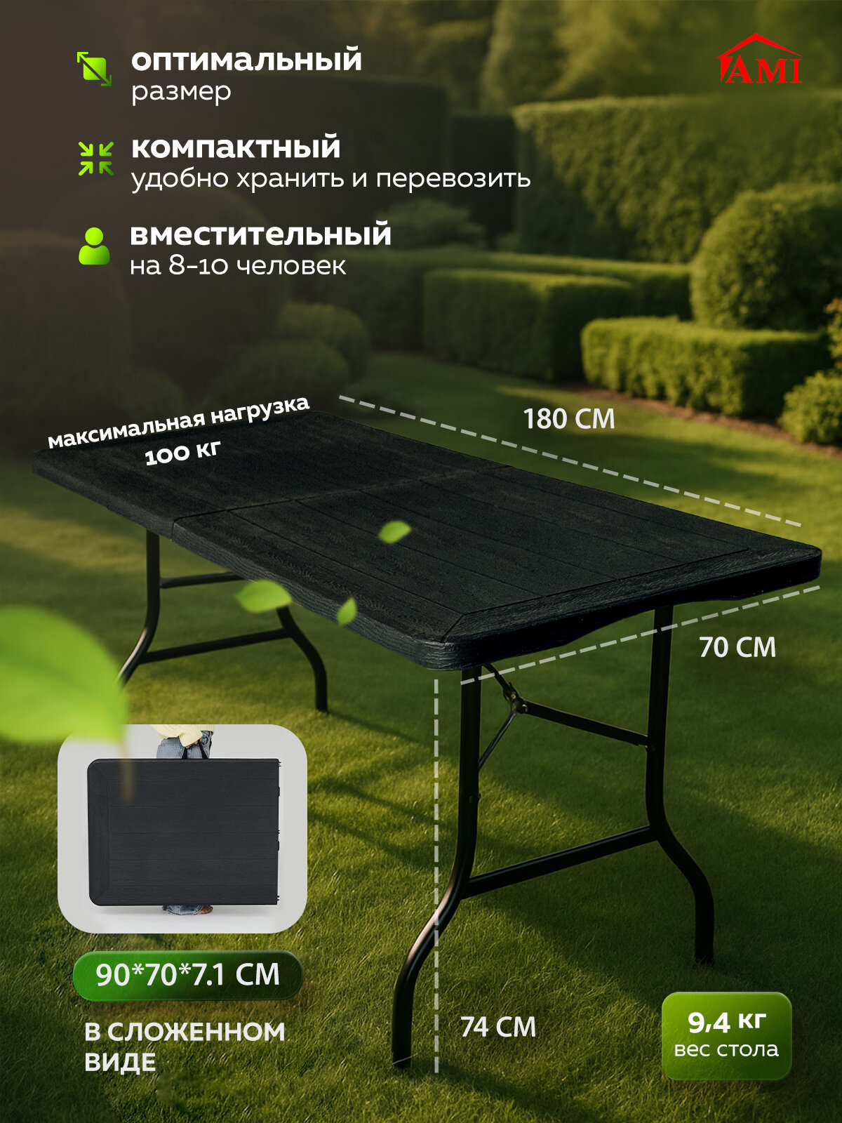 Стол садовый складной черный Lux 180х74х74 см, туристический раскладной, пластик, для дома дачи и сада, АМИ МЕБЕЛЬ: сравнение цен, характеристики, фото, актуальное наличие и цены.