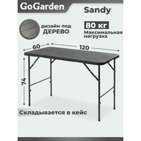 Стол садовый складной GoGarden SANDY. Пластик. Длина 120 см. Нагрузка 80 кг. Антикоррозийное покрытие. Складывается в кейс с ручкой.: сравнение цен, характеристики, фото, актуальное наличие и цены.